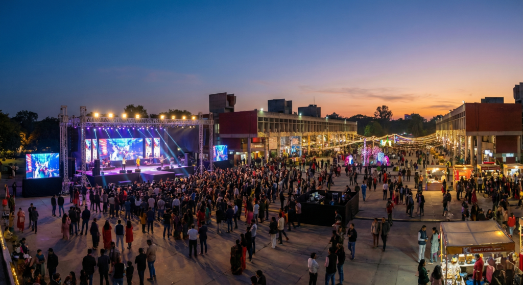 The Chandigarh Carnival is one of the city’s most energetic and contemporary festivals, celebrating art, music, creativity, and community spirit. Held in prominent public spaces like Sector 17 Plaza, the carnival transforms the heart of Chandigarh into a lively cultural hub filled with colour, rhythm, and youthful enthusiasm.